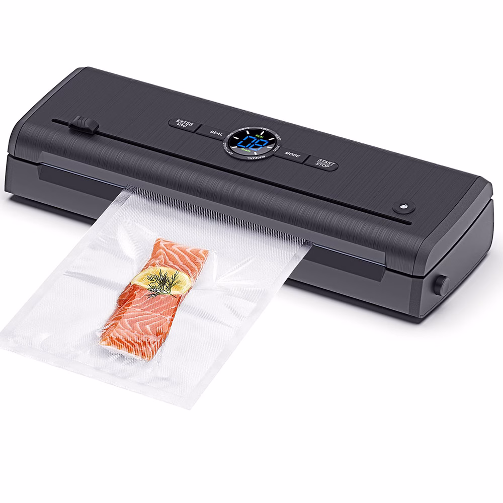- Versatile Functionality: External suction nozzle enables versatile packaging options beyond standard vacuum sealing.